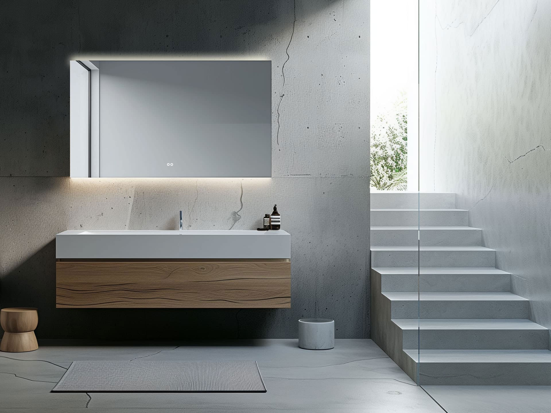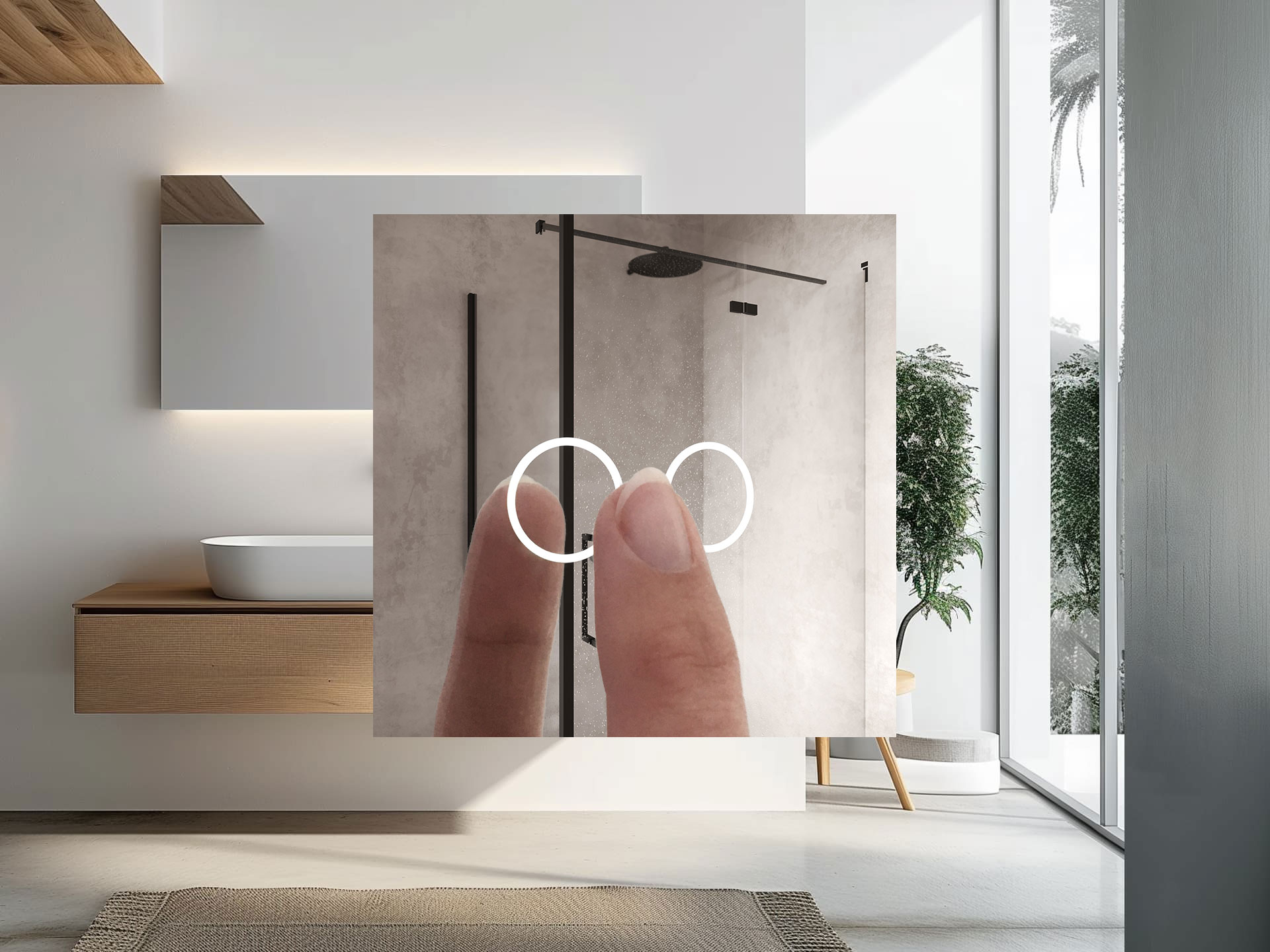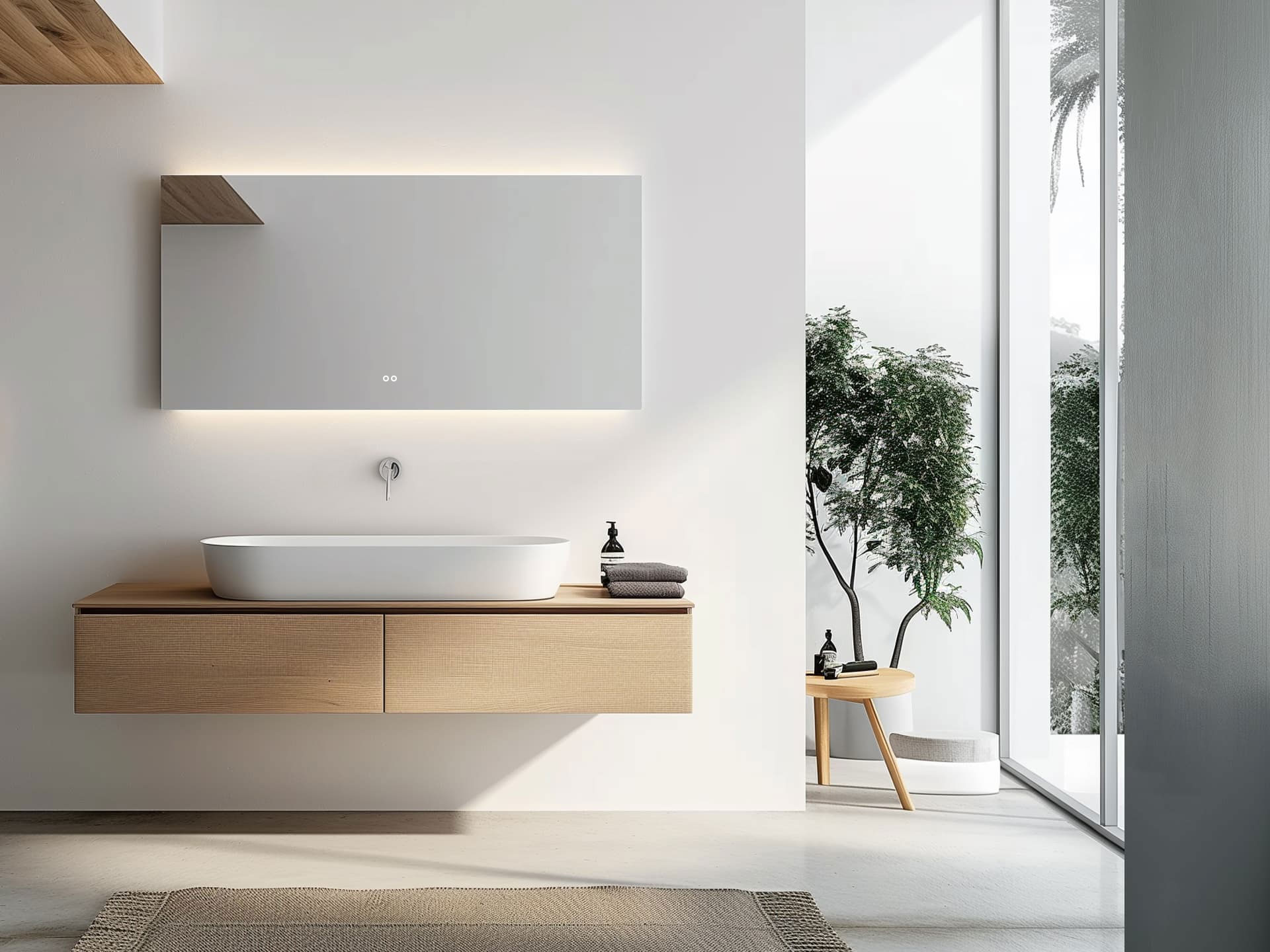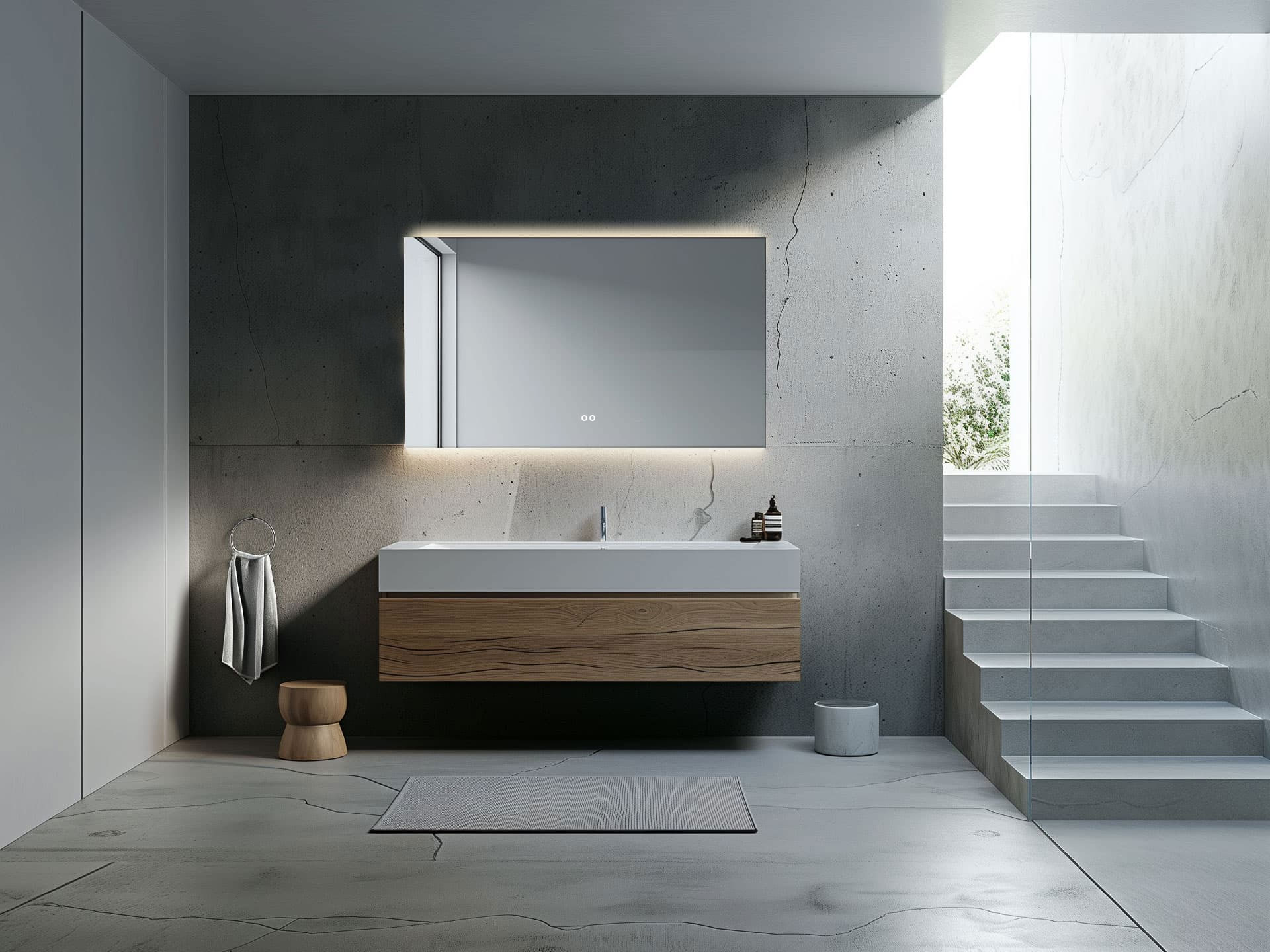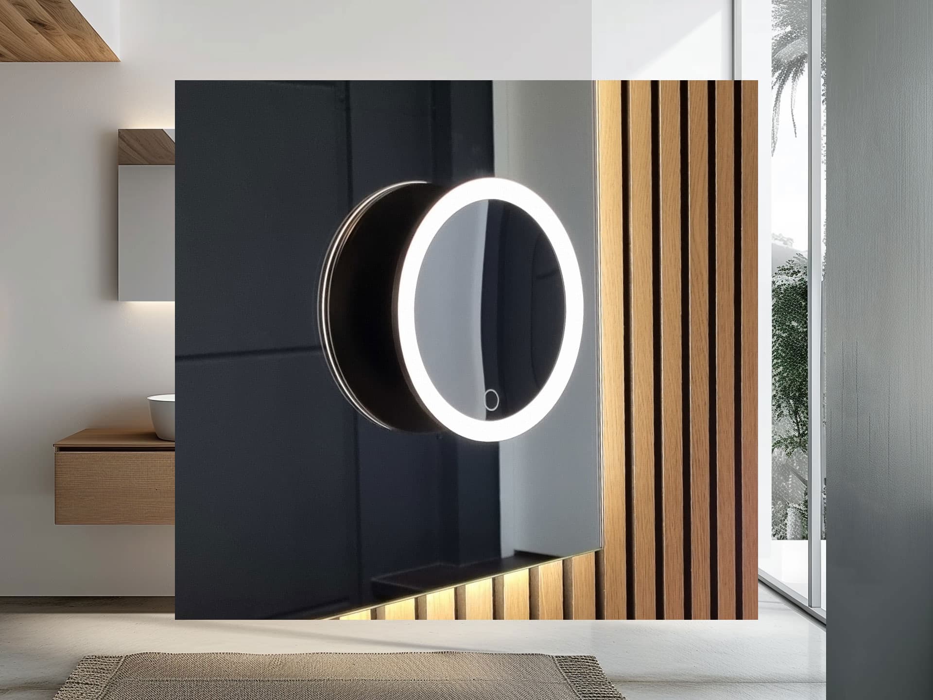 Der Berührungssensor befindet sich auf der rechten Seite des Spiegels. Dieser Sensorschalter ist mit einer Dimmfunktion ausgestattet, sodass Sie die Helligkeit der LED-Beleuchtung an Ihre persönlichen Vorlieben anpassen können. Nützlich! Diese Position wird automatisch gespeichert.
